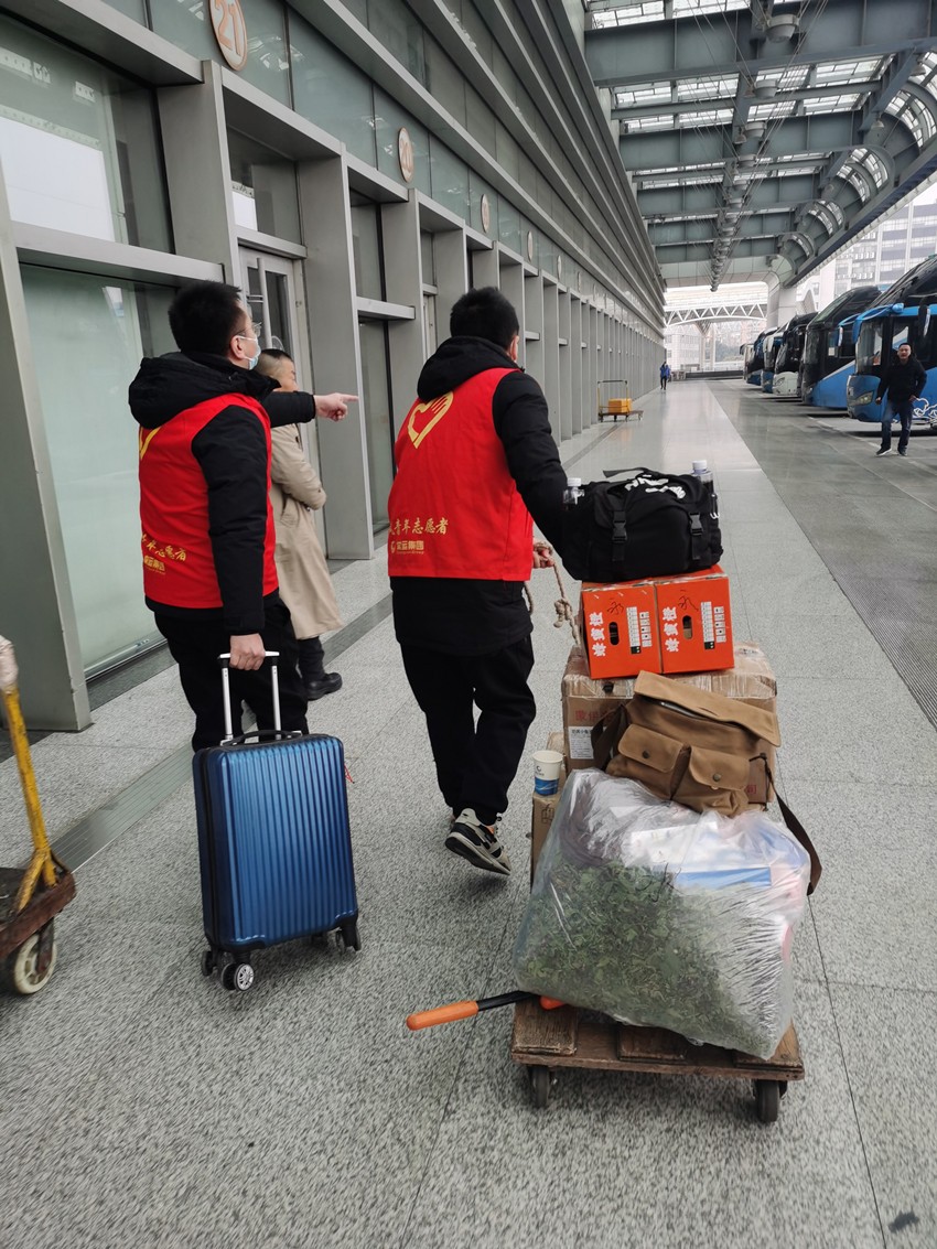 “怎樣讓我們的志愿服務(wù)更走心,更加滿足旅客進站乘車的真正剛需”,常運集團在組織今年的“愛在旅途 順風(fēng)志愿行”春運志愿服務(wù)活動時首先專注這里。務(wù)工返鄉(xiāng)的旅客行李多,中老年旅客需要更多的人工指引幫助,攜帶“小候鳥”回家的既要拎著行李還要拖著孩子……各種各樣的情況,各種各樣的需求。因此,常州汽車站順風(fēng)志愿服務(wù)隊將回答問詢、站內(nèi)引導(dǎo)、幫提行李這些乘車剛需作為服務(wù)重點,2月7-8日,志愿者們分布在實名制進站口、安檢儀旁及候車室、一樓廣場,一幕幕溫暖的故事持續(xù)上演。一對回新沂的老夫妻,拖著平板車,上面放著紙箱拎袋七八個,外加兩輛不新的折疊自行車,拖車寬到進不了閘機;一位阿姨拖著大號行李箱,手提拎包拎袋四五個,獨自上不了電梯;一個大叔是孩子在“常州汽車站”微信公眾號上幫買了票,以為要取了票才能乘車又不會操作;還有一雙干燥皴裂的手拿著一張車票,不知道在哪里檢票而不知所措,這些都在志愿者和車站工作人員的幫助下,順利地踏上了歸途,他們一連十幾個的“謝謝”和不停回眸的點頭笑容,讓志愿者們也靦腆起來。