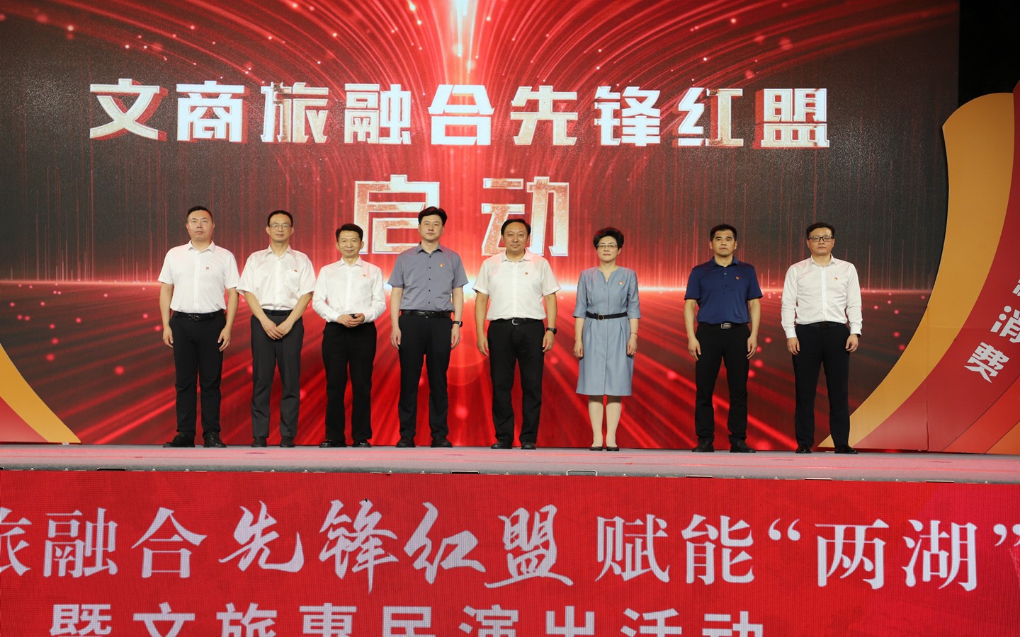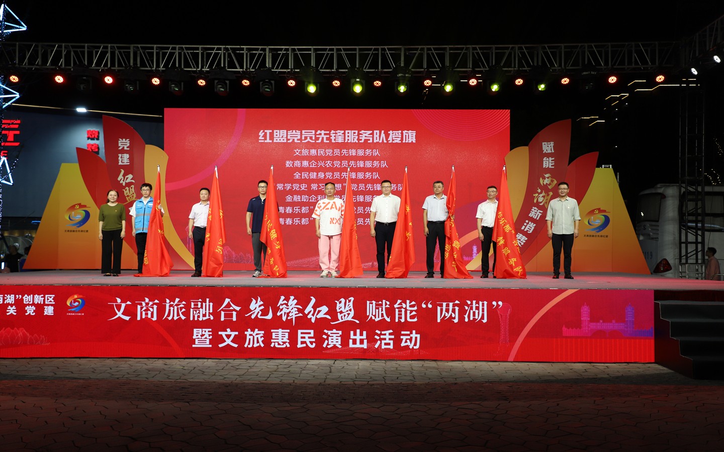 9月13日晚,“黨建紅盟聚合力、賦能兩湖新消費(fèi)”文商旅融合先鋒紅盟賦能“兩湖”暨文旅惠民演出活動在藍(lán)海豚文化藝術(shù)街區(qū)成功舉行。市級機(jī)關(guān)工委書記趙天晟,副書記潘奕,市文廣旅局黨組書記、局長嚴(yán)俊,市商務(wù)局黨組書記、局長韓雪琴,市黨史工委主任柯善學(xué)等領(lǐng)導(dǎo)出席活動;金壇、武進(jìn)、鐘樓區(qū)文旅(體育)、商務(wù)、黨史部門領(lǐng)導(dǎo)及恐龍園、江南銀行、常州移動等紅盟單位重點企業(yè)領(lǐng)導(dǎo)參加活動。集團(tuán)公司黨委書記、總經(jīng)理朱平春、副總經(jīng)理黃細(xì)富等領(lǐng)導(dǎo)及街區(qū)商管公司相關(guān)人員參加活動。